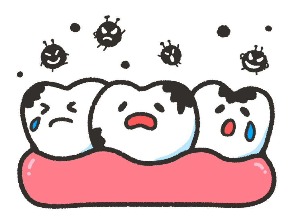 虫歯は、細菌が作り出す酸によって歯が溶かされる病気です。歯の表面から内部へと進行していき、放置すると歯に穴があいたり、強い痛みが出たりします。初期の段階では見た目が少し黒ずんで見えることもあり、着色と区別がつきにくい場合があります。ただし、虫歯は進行性の病気であり、自然に元の状態へ戻ることはほとんどありません。見た目だけで判断せず、専門的な確認が必要です。